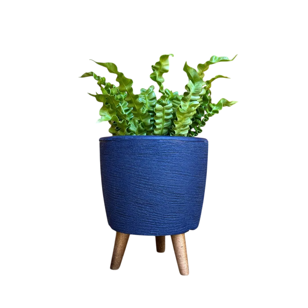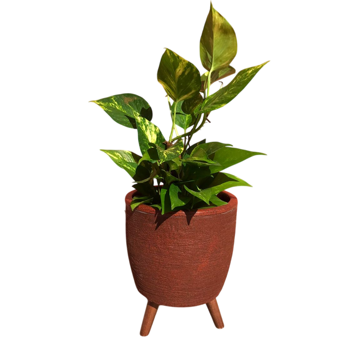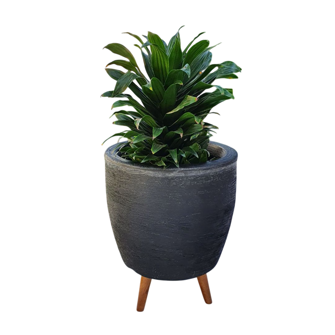 🌿 Presença visual natural — o tripé de madeira realça a planta como se fosse uma obra de arte viva